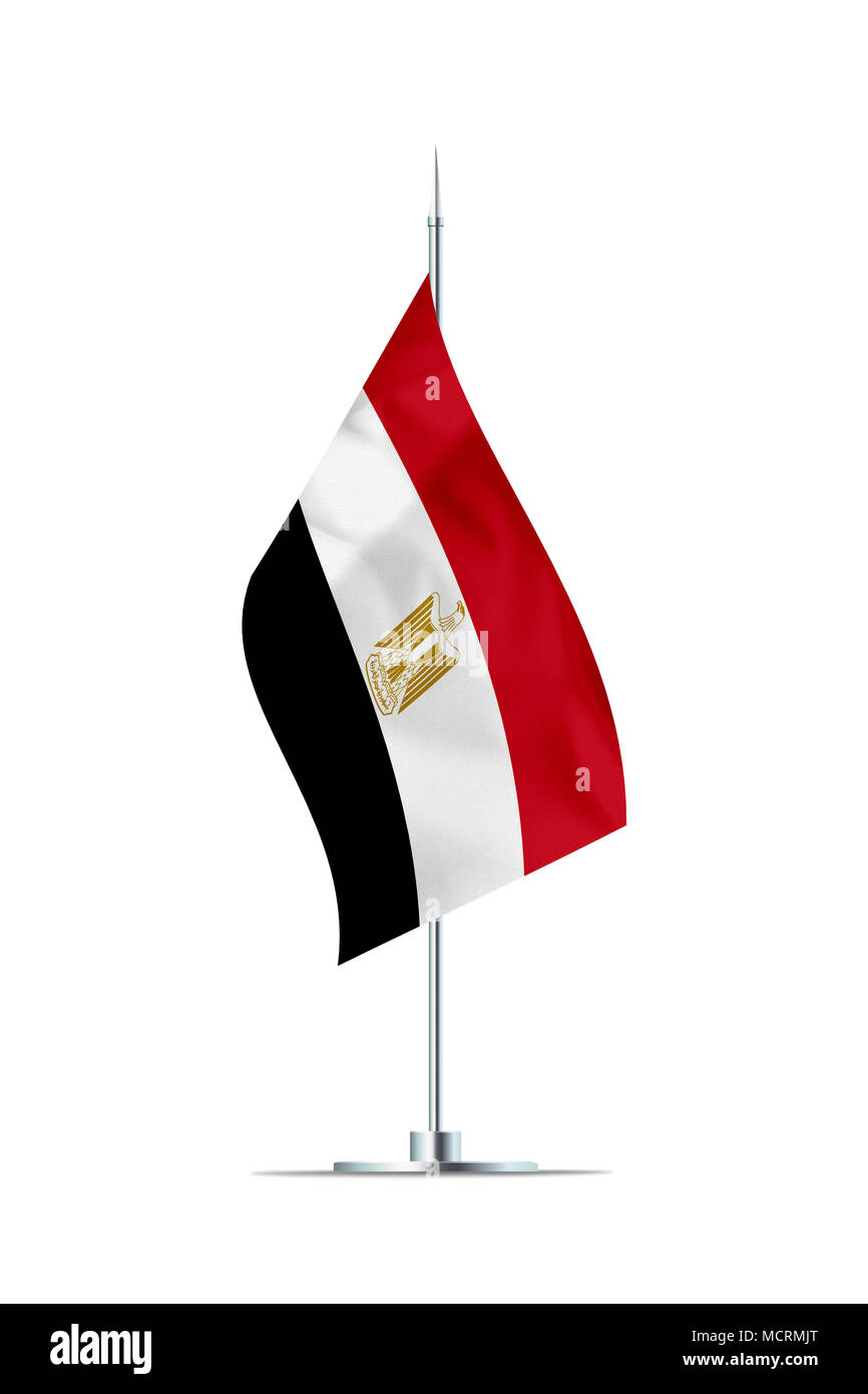 Piccola Bandiera Egiziana Su Un Palo Metallico La Bandiera E Ben Dettagliate Texture Tessili Isolato Su Sfondo Bianco Il Rendering 3d Foto Stock Alamy