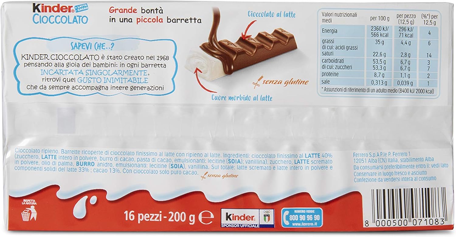 Kinder Barrette Di Cioccolato Al Latte 16 Pezzi Amazon It Alimentari E Cura Della Casa