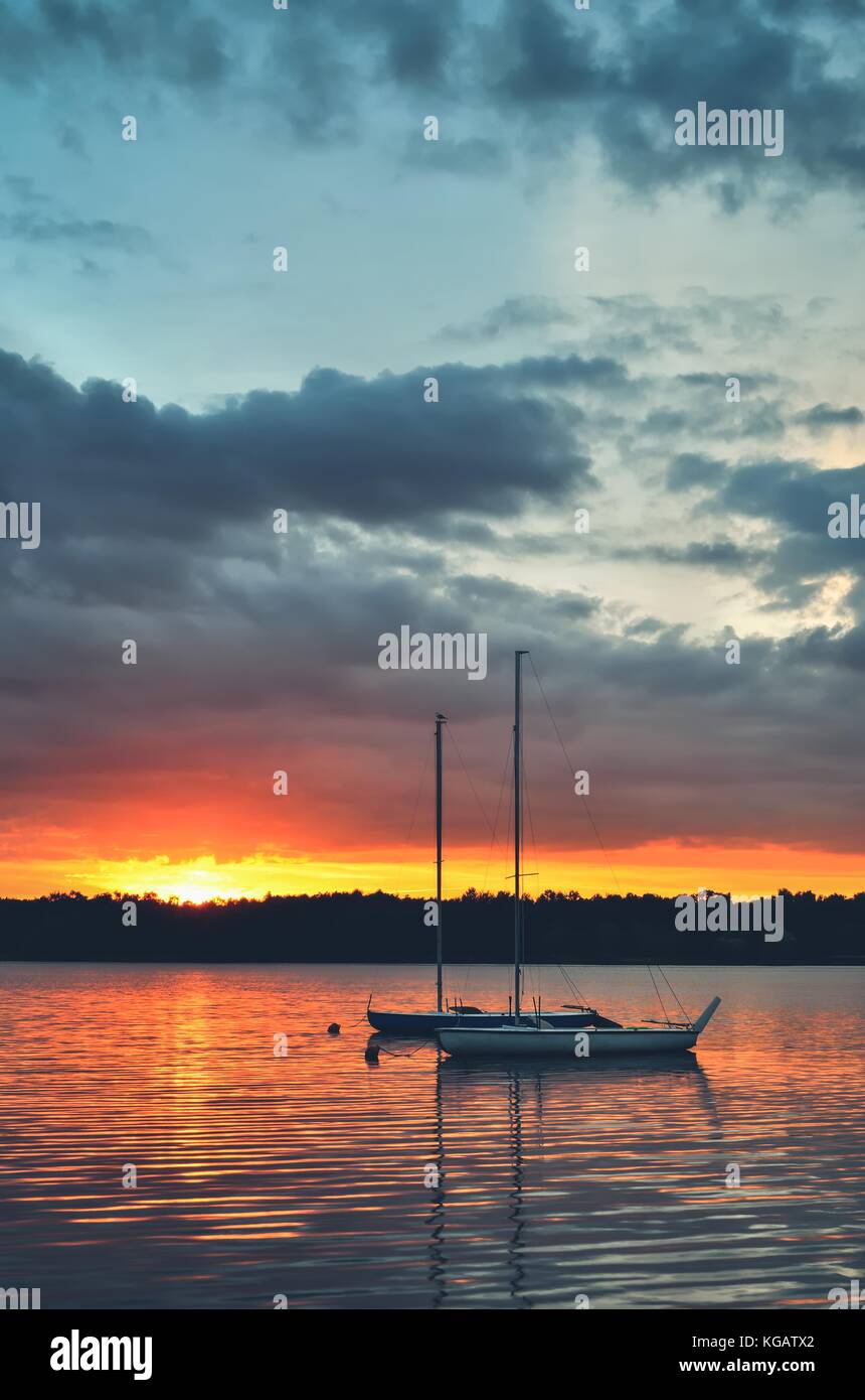 Bella Serata Estiva Paesaggio Barche Sul Lago Al Tramonto Foto Stock Alamy
