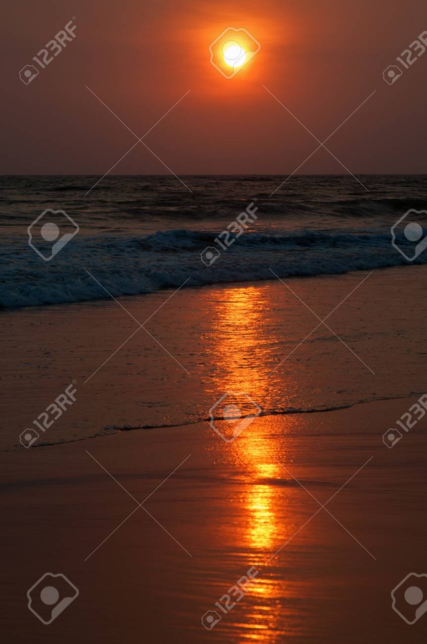 Immagini Stock Questa E Una Bella Serata Sulla Costa Dell Oceano Il Sole Si Riflette Sul Litorale Image 35710847