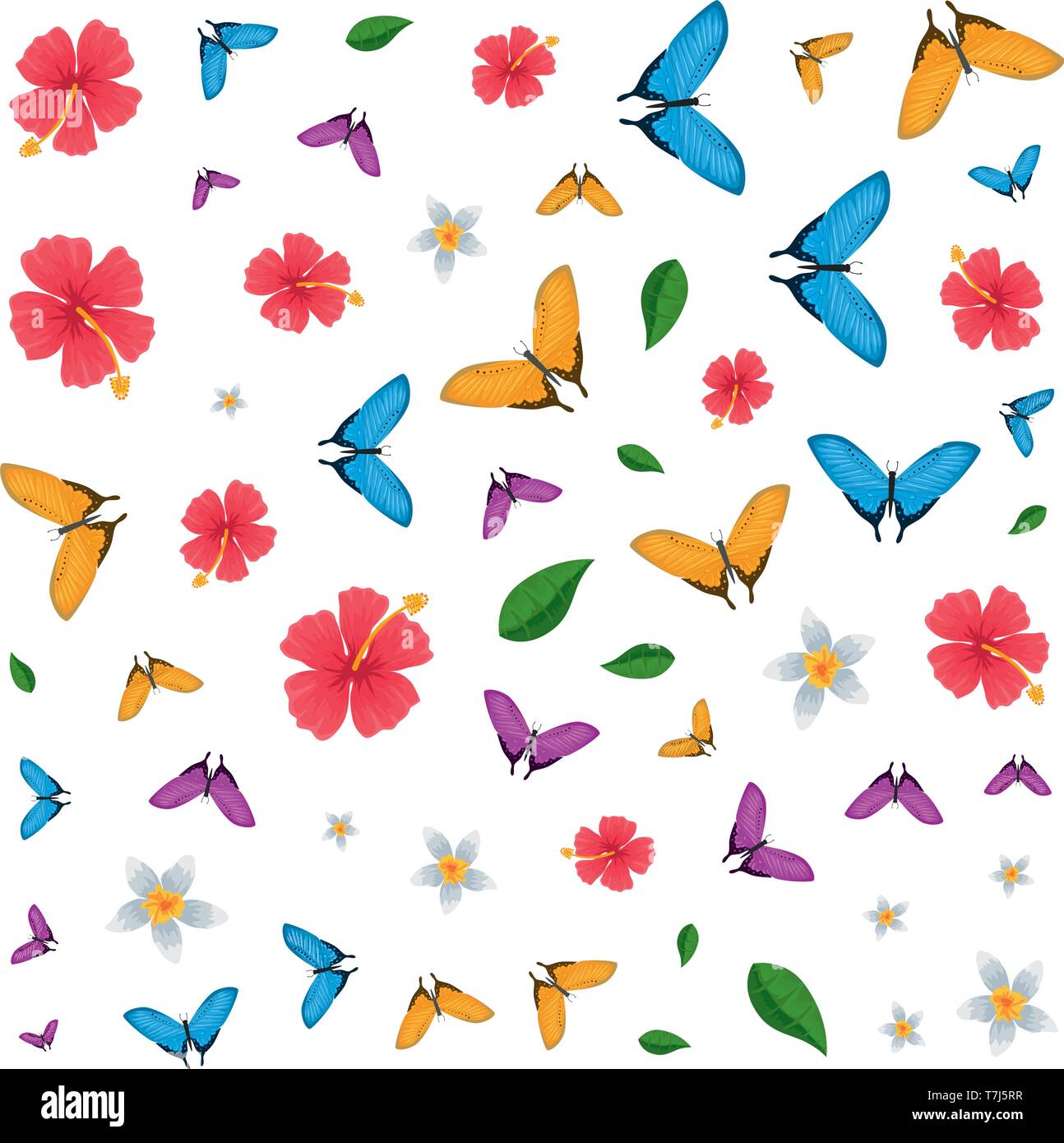 Gruppo Di Bellissime Farfalle Volare E Pattern Di Fiori Immagine E Vettoriale Alamy