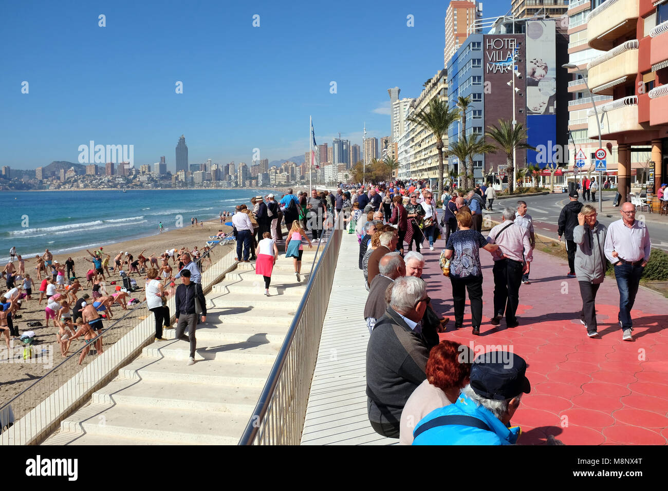 Benidorm Spagna Marzo 09 2018 Per I Turisti E La Gente Del Posto Si Mescolano Sul Lungomare E Di Esercitare Sulla Spiaggia Di Poniente Di Benidorm In Costa Blanca I Foto Stock Alamy