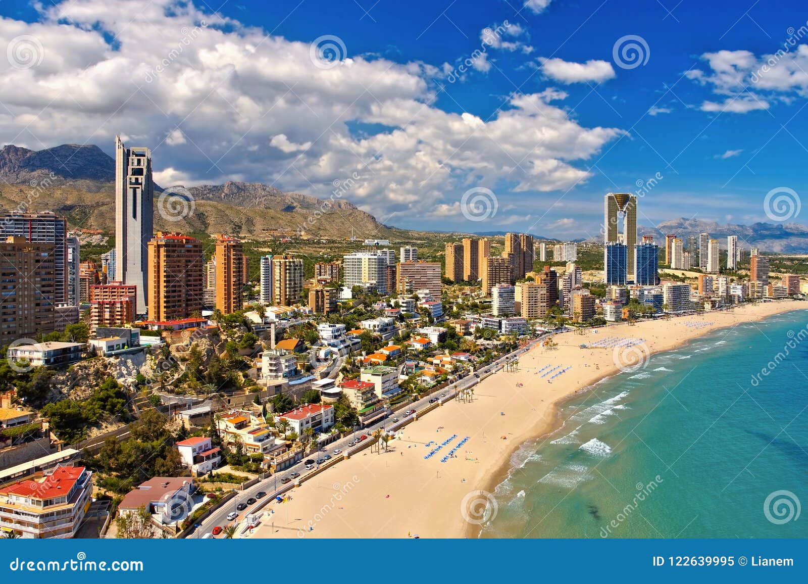 Grattacieli E Spiaggia Di Lungomare A Benidorm Spagna Immagine Stock Immagine Di Cityscape Spiaggia 122639995