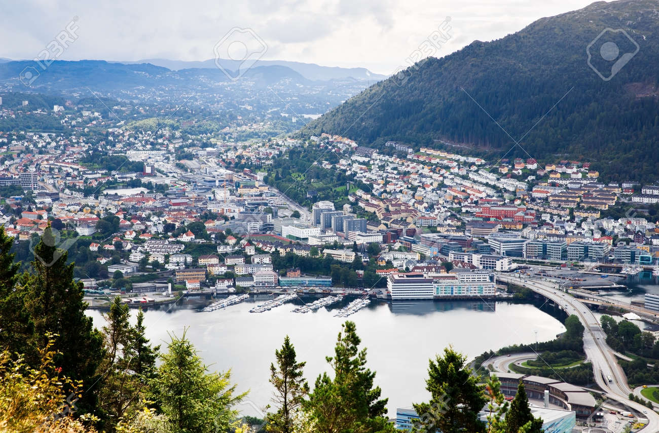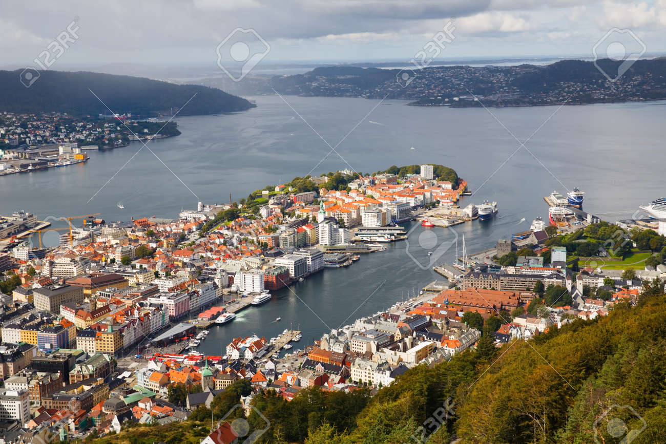 Immagini Stock Vista Dall Alto Della Citta Di Bergen In Norvegia Image 94650487