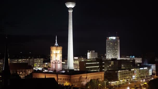 Berlin August 21 Real Time Tilt Down Shot Of Tv Tower Night Time Stock Video C Diproduction 192626364