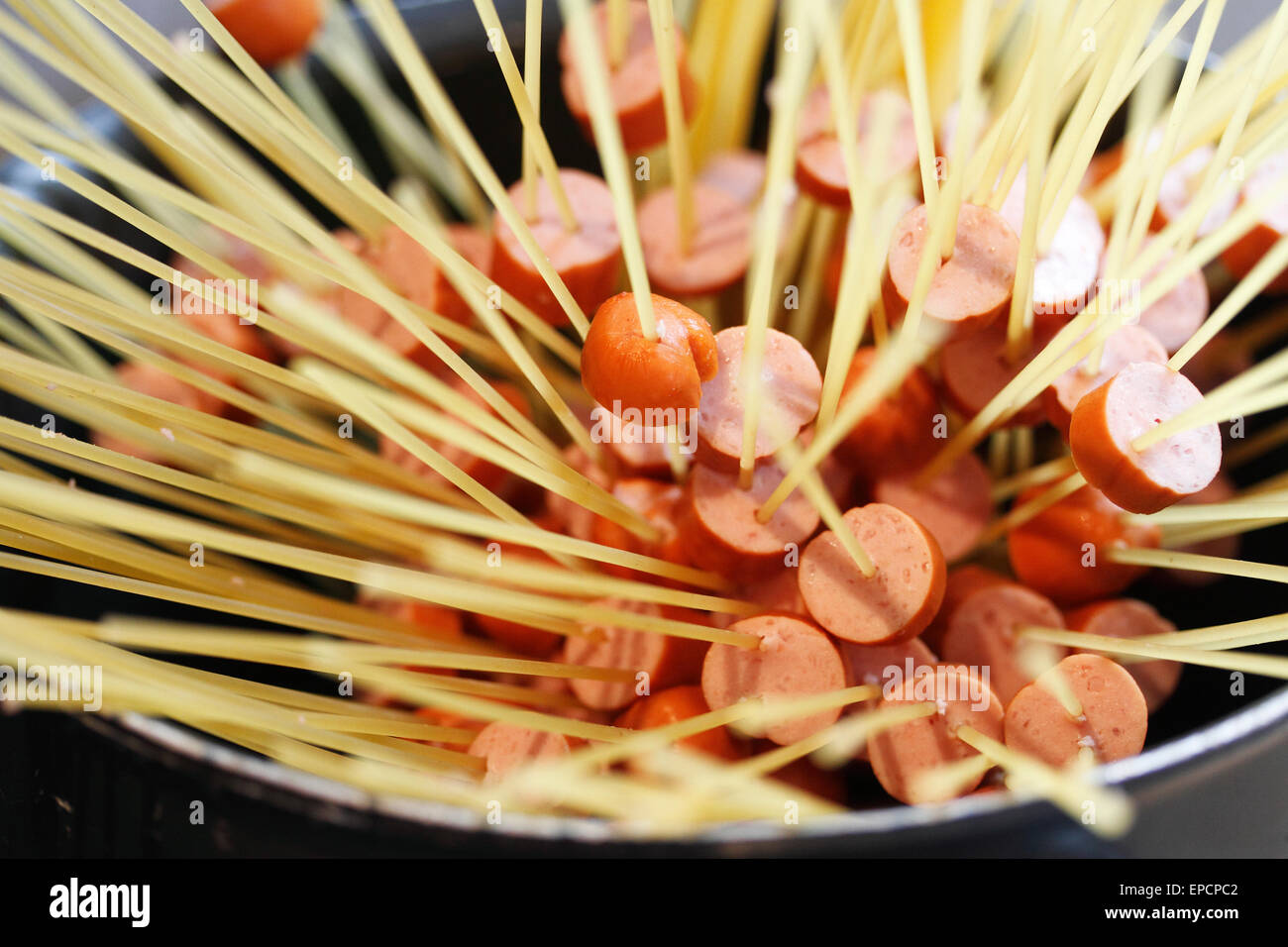 Gli Spaghetti E Wurstel Un Pasto Per Bambini Popolare In Amaerica Menzionati Nella Big Bang Theory Come Sheldon Cooper S La Mamma Foto Stock Alamy