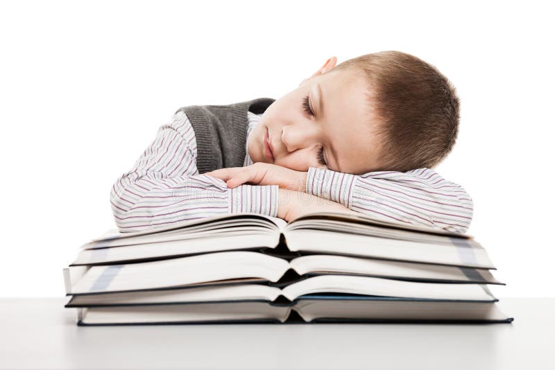 Bambino Che Dorme Sui Libri Di Lettura Immagine Stock Immagine Di Esaurimento Occhio 28820373