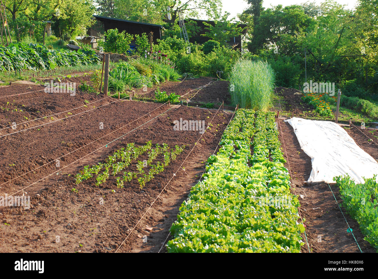 Herb Patch And Bean Bars In The Bio Garden Stock Photo Alamy
