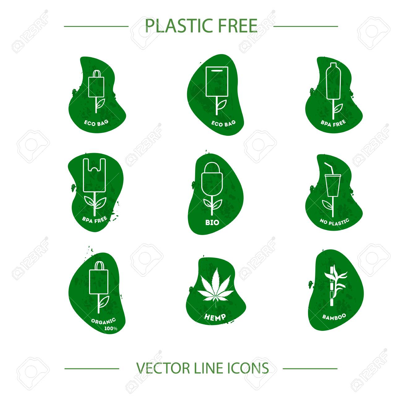 Plastic Free Icon Set Pacet Bpa Free Bio Hemp Bamboo No Royalty Free Cliparts Vectors And Stock Illustration Image 119261390