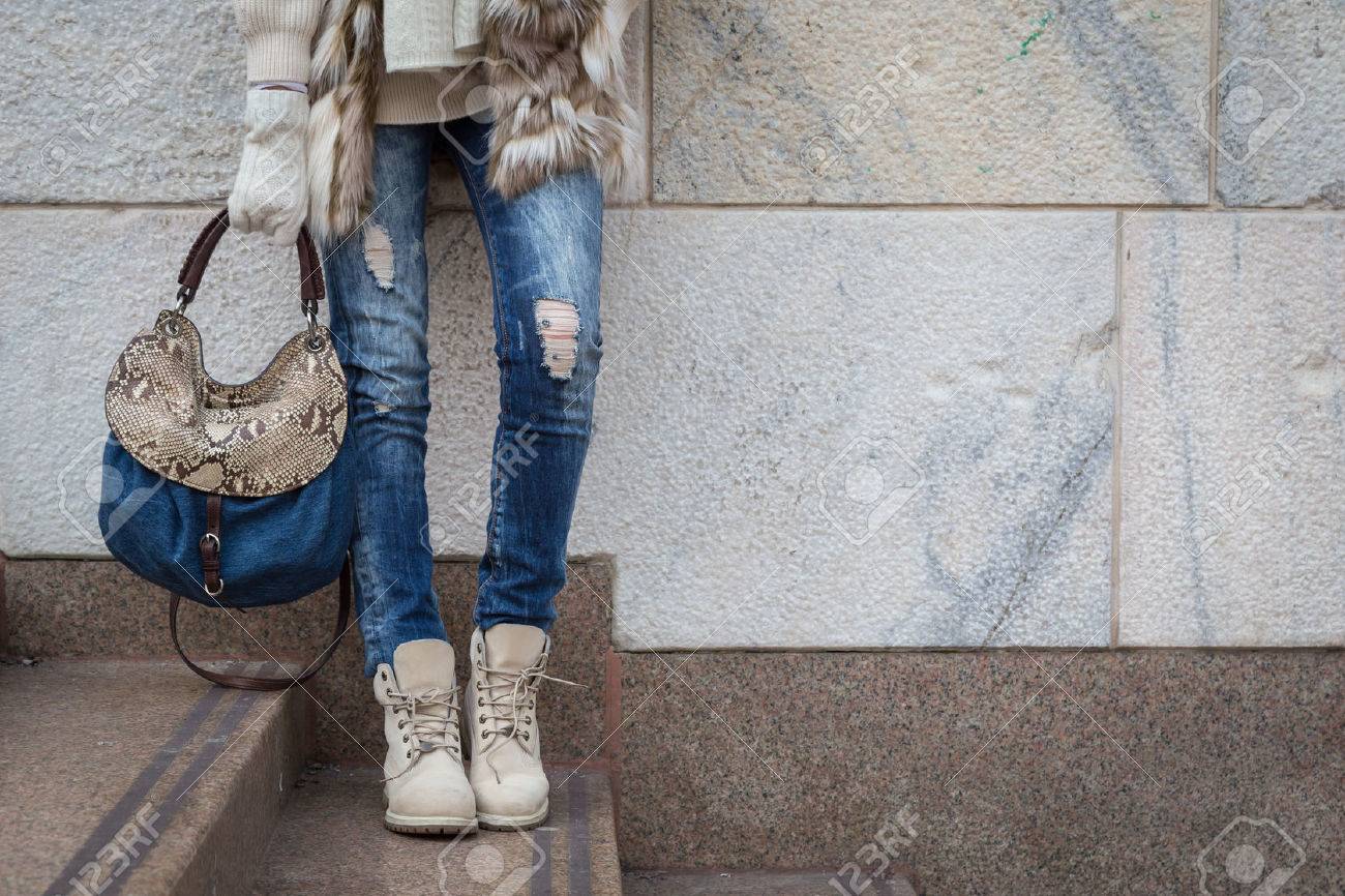 Immagini Stock Particolare Di Una Giovane Donna Con La Borsa In Posa Per Le Strade Della Citta Image 36253719