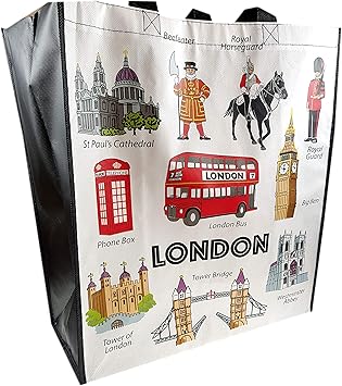 Borsa Per La Spesa Motivo Londra Con Disegni Di Simboli Tipici Della Citta Borsa Souvenir Borsa Per La Spesa Riutilizzabile Splendida Borsa Ispirata A Londra Da Collezione E Divertente Borsa A Mano
