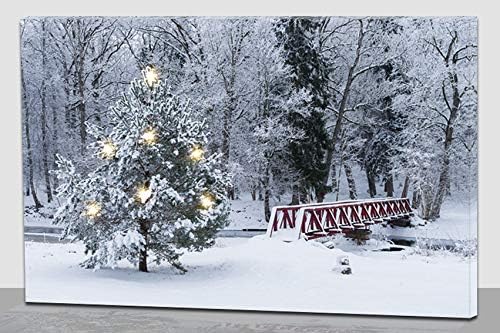 Quadro Natalizio Bosco Innevato E Luci Led Amazon It Casa E Cucina