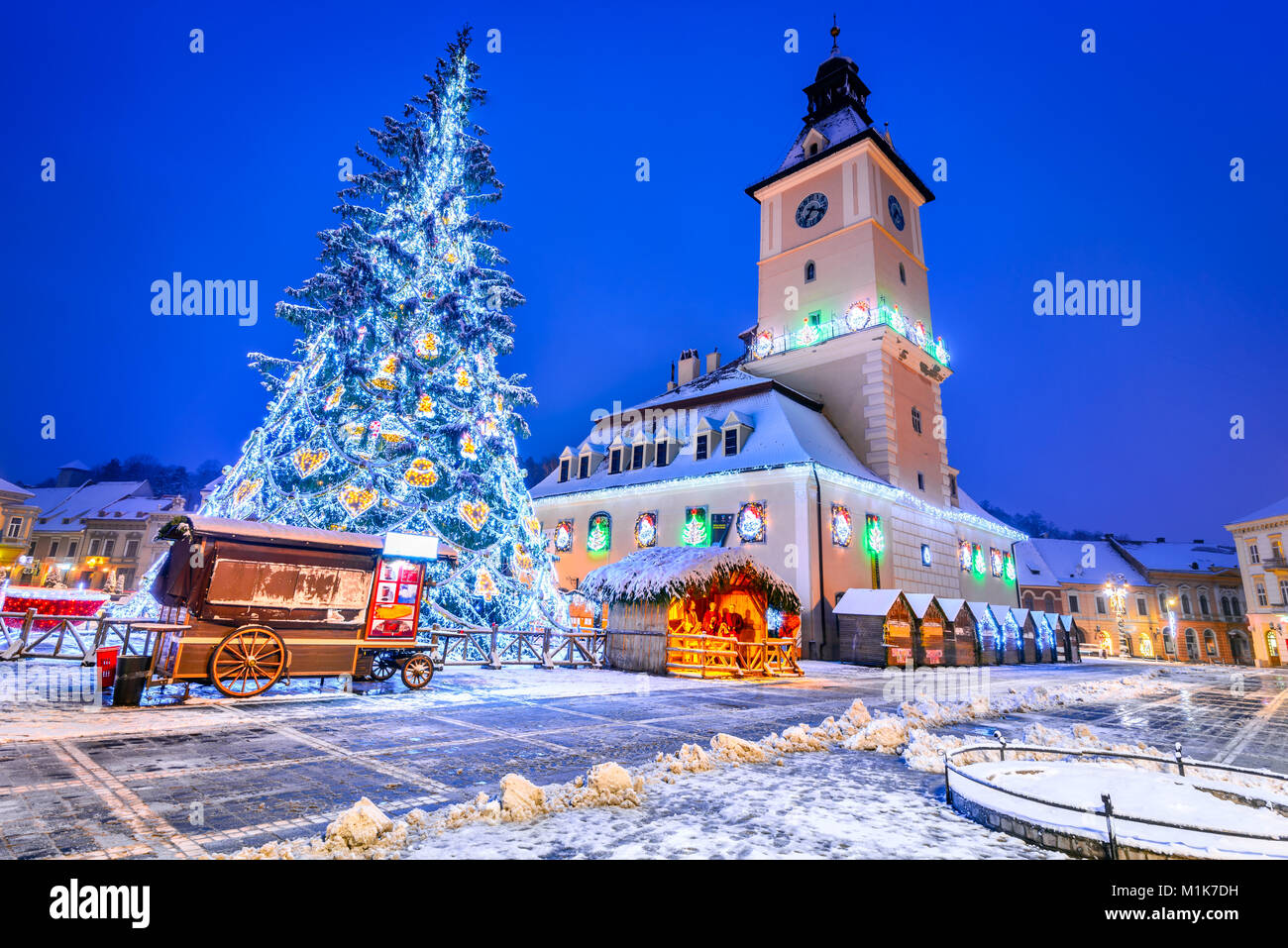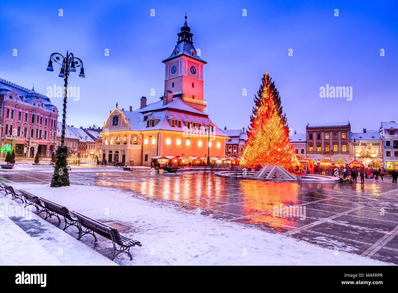Brasov Romania Mercatino Di Natale In Piazza Principale Con Albero Di Natale E Le Luci Transilvania Landmark Foto Stock Alamy