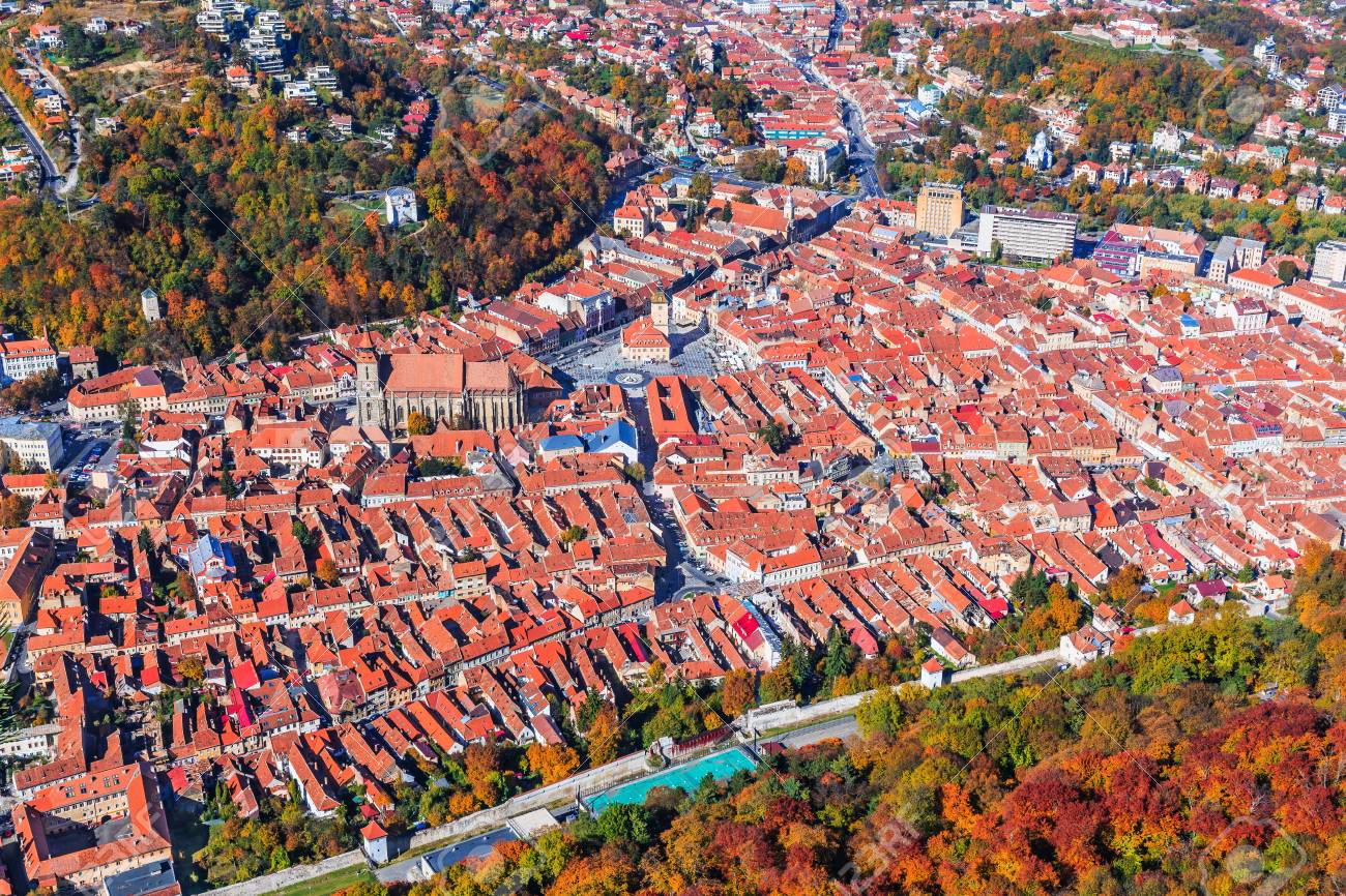 Immagini Stock Brasov Romania Vista Aerea Della Chiesa Nera E Della Citta Vecchia Image 90253040