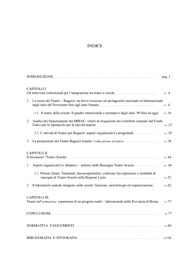 Prospettive Di Integrazione Tra Teatro E Scuola Progettualita E Dinamiche Organizzative Indice