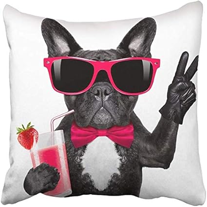 Kinhevao Cuscino Decorativo Bevanda Drink Bulldog Francese Cane Con Frullato Frullato Cocktail E Bicchieri Divertenti Cuscino Per Animali Bianco Dita Di Pace Amazon It Casa E Cucina