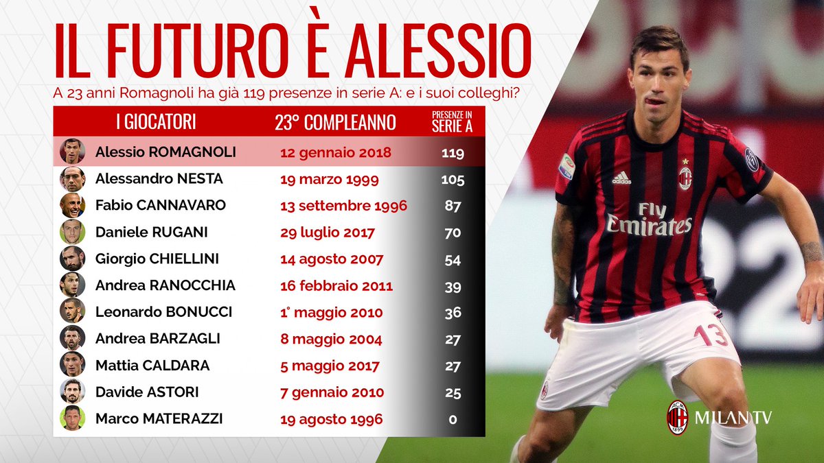 Milan Tv בטוויטר Tanti Auguri Di Buon Compleanno Ad Alessio Romagnoli A 23 Anni E Sempre Un Passo Avanti Rispetto Alla Concorrenza Tra I Grandi Difensori Italiani Degli Ultimi 20 Anni