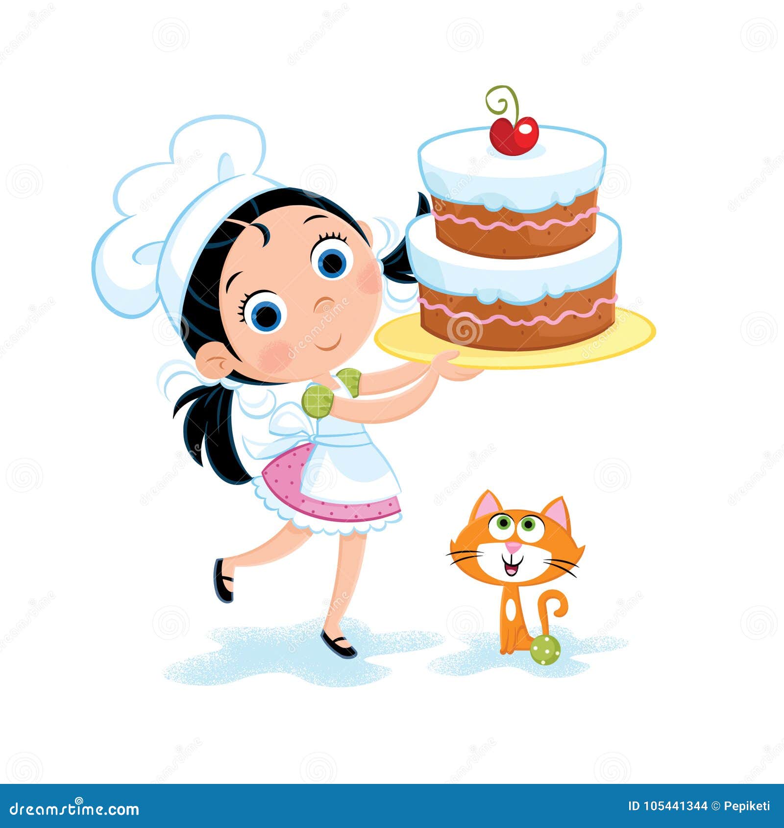Buon Compleanno Bambina E Torta Di Compleanno Illustrazione Di Stock Illustrazione Di Chef Zenzero 105441344