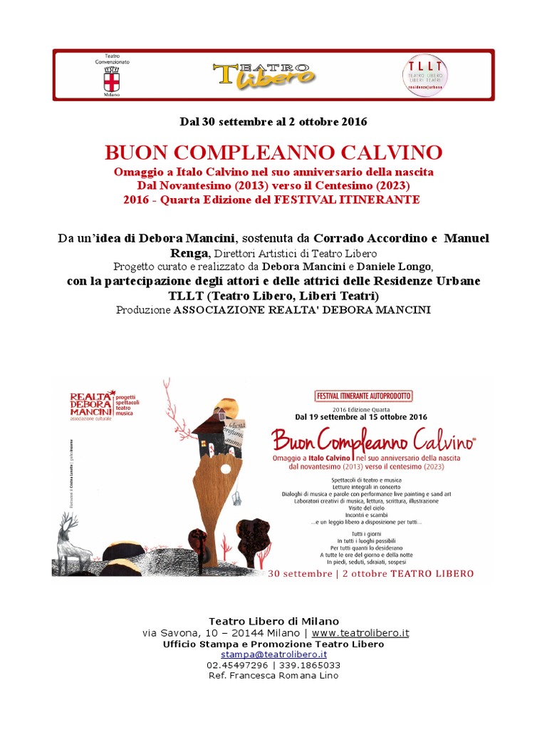 Teatro Libero Buon Compleanno Calvino Rumor S Cena Culture Teatrali Cinematografiche E Letterarie Backstage Interviste E Temi Sociali Istruzioni Per Una Visione Consapevole