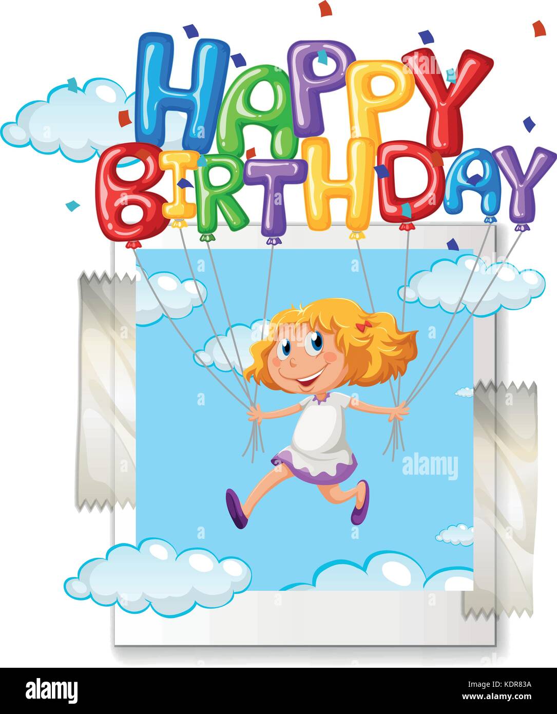 Ragazza Con Buon Compleanno Palloncino Su Photoframe Illustrazione Immagine E Vettoriale Alamy