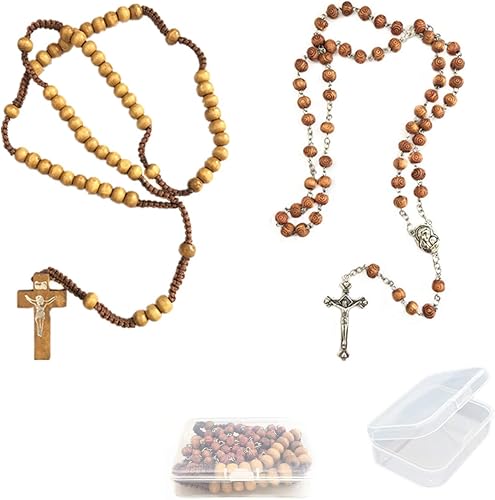 Ppx 2 Pezzi Collana Con Rosario Cattolico Composto Da Perline In Legno Di Olivo E Croce In Metallo Con Scatola Amazon It Gioielli