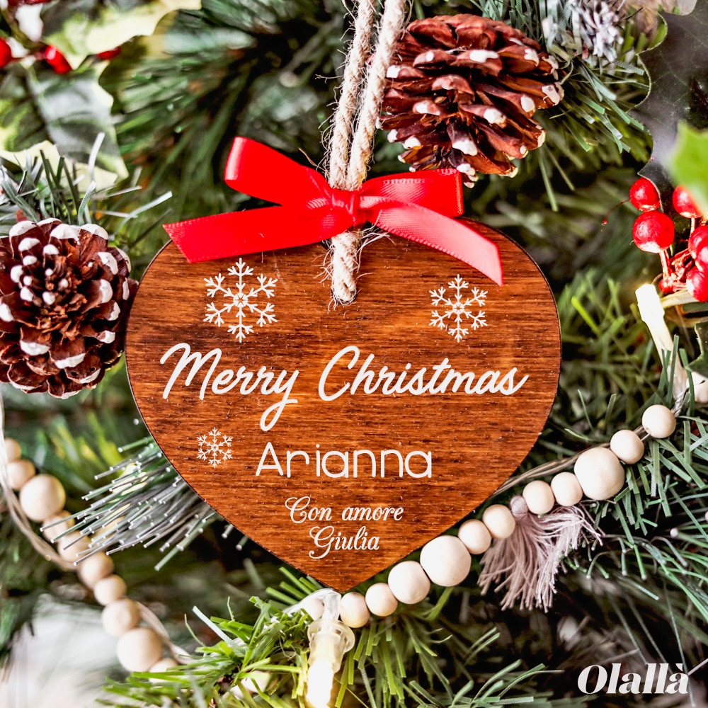 Decorazione Di Legno Da Appendere All Albero Di Natale Personalizzata Decoro Merry Christmas A Cuore Olalla