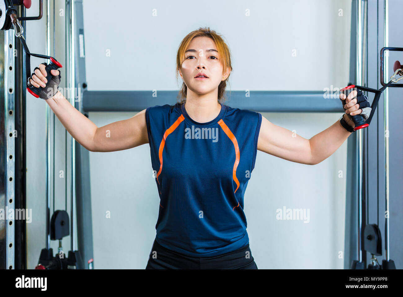 Giovane Donna Asiatica Che Lavora Fuori E Fare Un Allenamento Fitness In Una Palestra Locale Buona Per I Giovani Uno Stile Di Vita Sano O Il Concetto Di Fitness Foto Stock