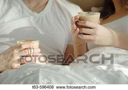Giovane Coppia Letto Caffe Bevente Insieme Archivio Fotografico T63 596408 Fotosearch