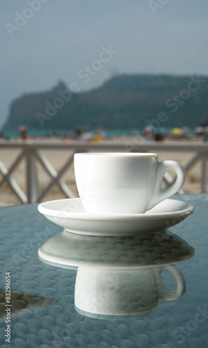 Una Tazza Di Caffe Al Mare Foto Premium