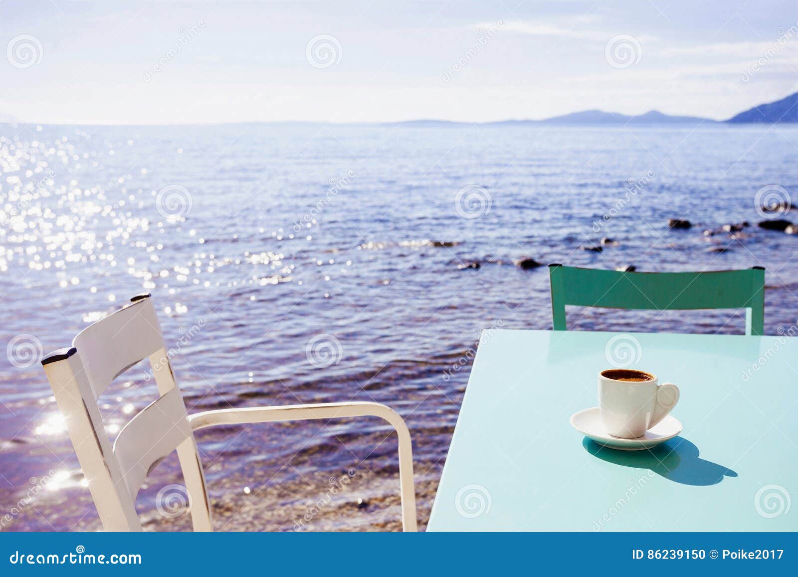 Caffe Greco In Un Caffe Vicino Al Mare Fotografia Stock Immagine Di Caffe Mare 86239150