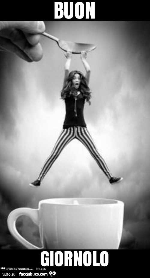 Ragazza Si Regge Al Cucchiaino Per Non Cadere Dentro La Tazza Gigante Di Caffe Buon Giornolo Facciabuco Com