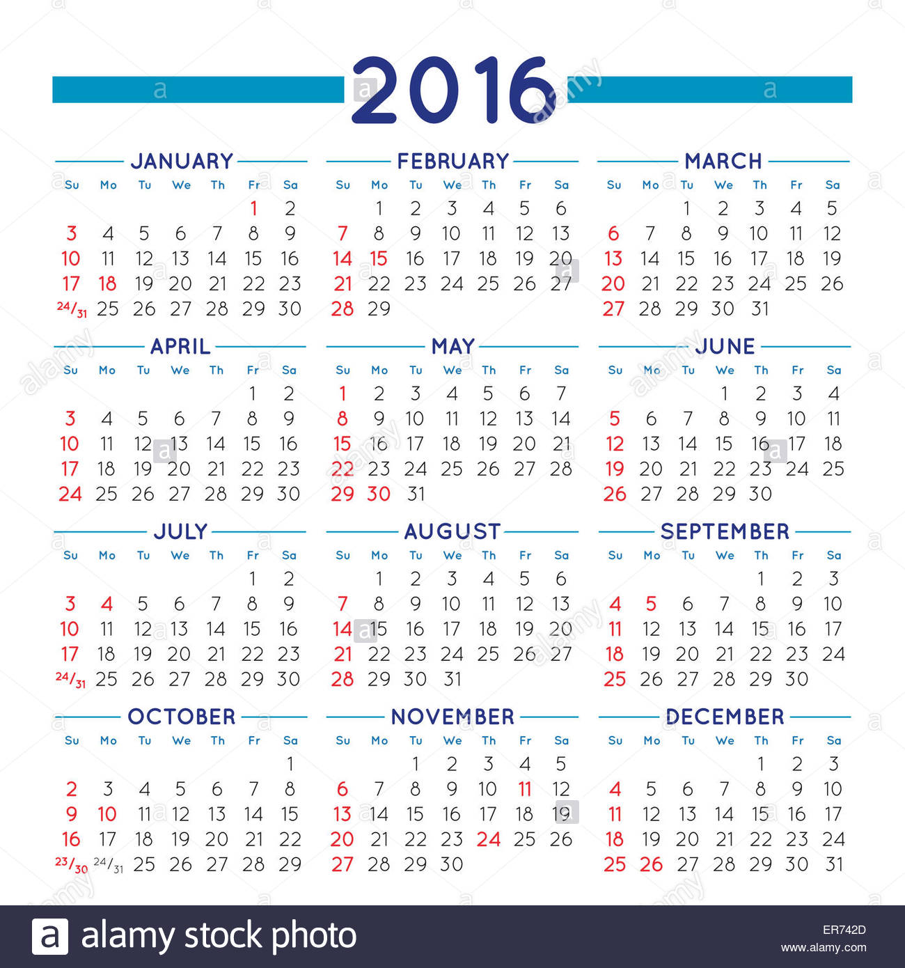 2016 Elegante Calendario Squadrato Con Usa Giorni Festivi File Facile Da Modificare E Applicare Anno Di Calendario 2016 Calendario 2016 Foto Stock Alamy