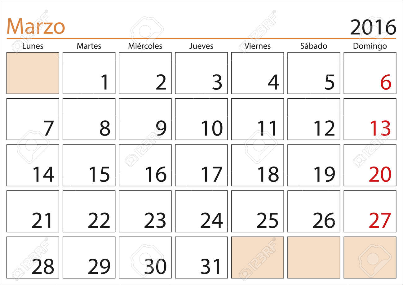 March Month In A Year 2016 Calendar In Spanish Marzo 2016 Calendario Royalty Free Cliparts Vectors And Stock Illustration Image 48712305