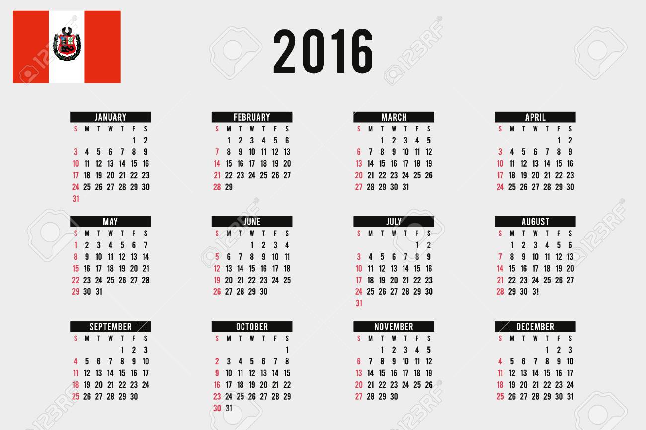 Immagini Stock Un 2016 Calendario Con La Bandiera Del Peru Image 46238190