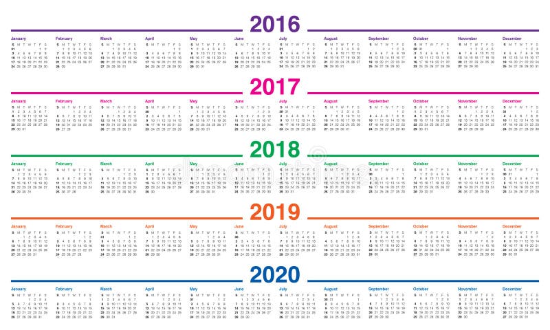 Calendario Annuale Dal 2016 Al 2020 Acquista Questo Vettoriale Stock Ed Esplora Vettoriali Simili In Adobe Stock Adobe Stock