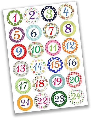 Papierdrachen 24 Adesivi Con Numeri Per Il Calendario Dell Avvento Motivi Colorati N 1 Adesivi Per Creare E Decorare Amazon It Casa E Cucina