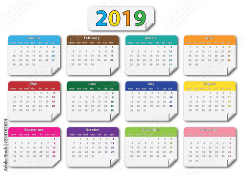 Calendario 2019 En Espanol Con Colores Saturados Buy This Stock Vector And Explore Similar Vectors At Adobe Stock Adobe Stock