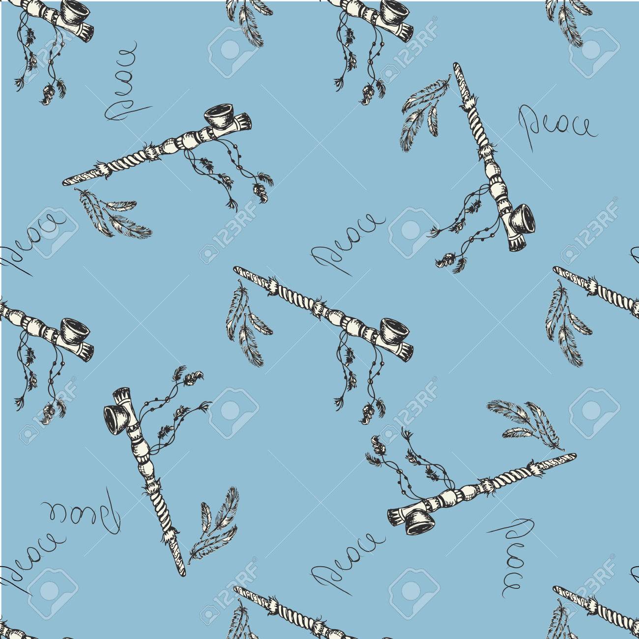 Vettoriale Senza Soluzione Di Modello Nativo Calumet Della Pace Americano Modello Drawing Seamless Mano Puo Essere Utilizzato Per Carta Da Parati Riempimenti A Motivo Sfondi Delle Pagine Web Texture Di Superficie Image