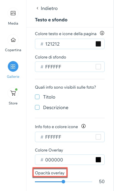 Richiesta Modificare L Opacita Dell Overlay Per La Copertina E Le Foto Nelle Gallerie Di Wix Photo Album Centro Di Apprendimento Wix Com