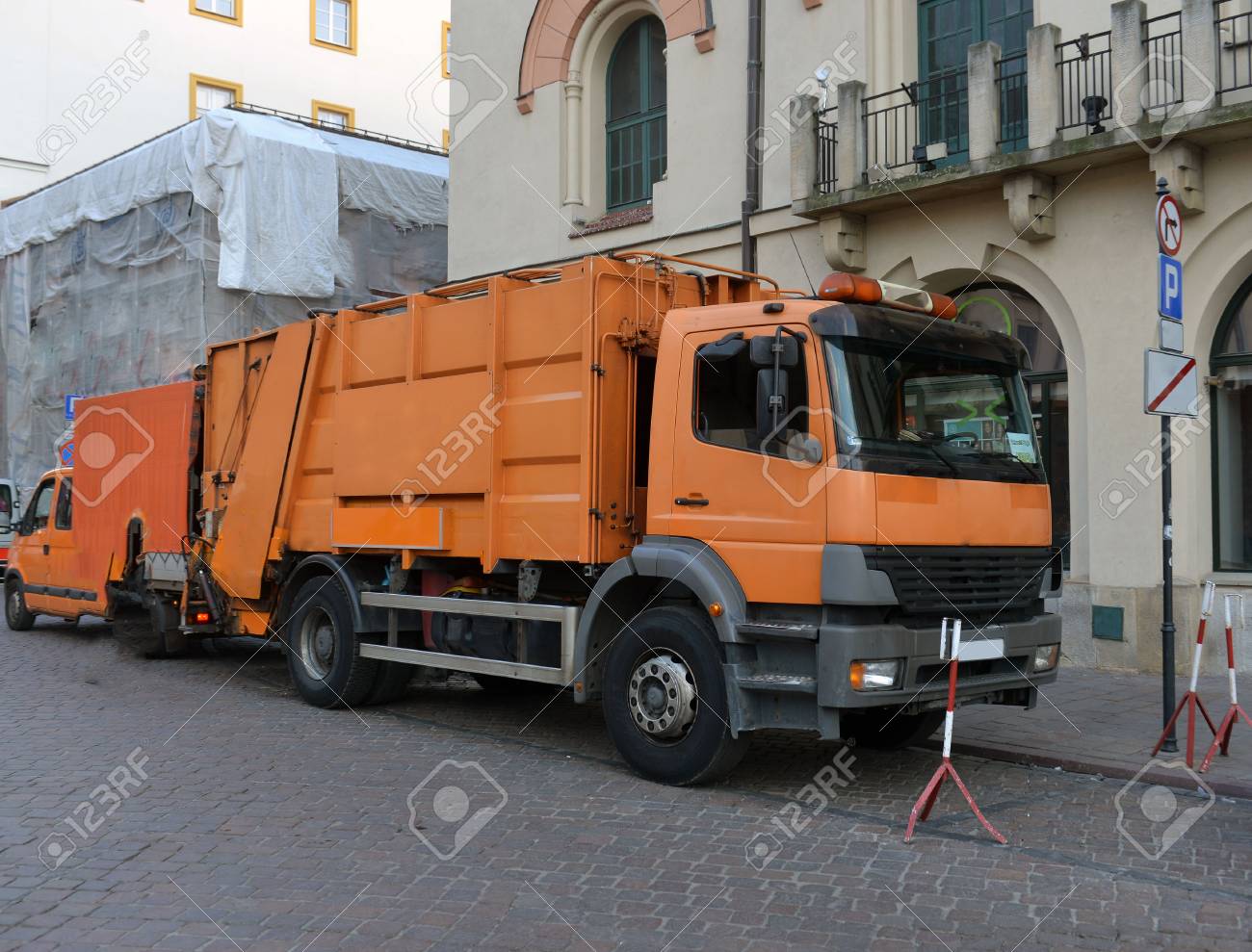 Immagini Stock Camion Della Spazzatura Nelle Citta Di Strada Image 30879836