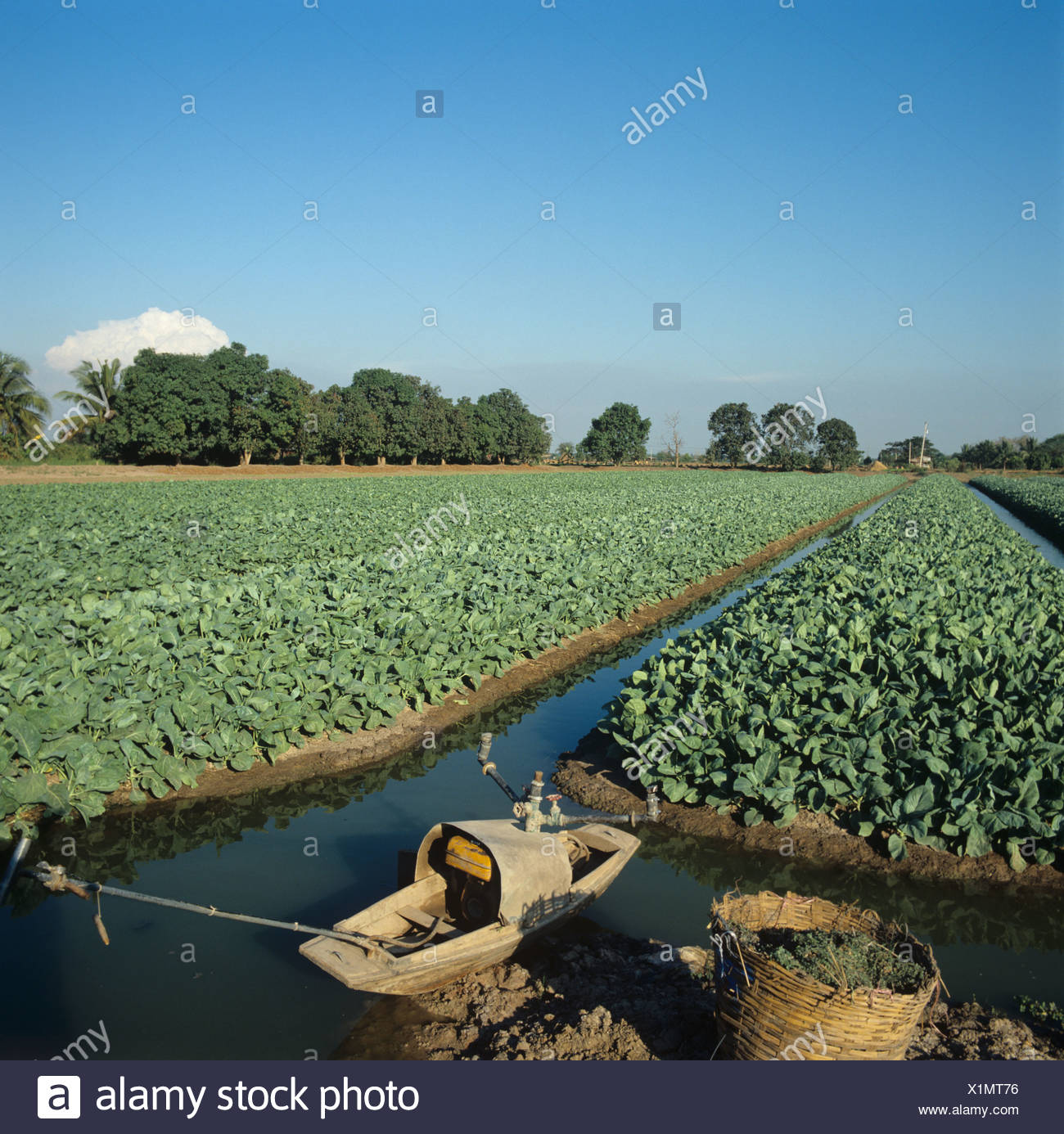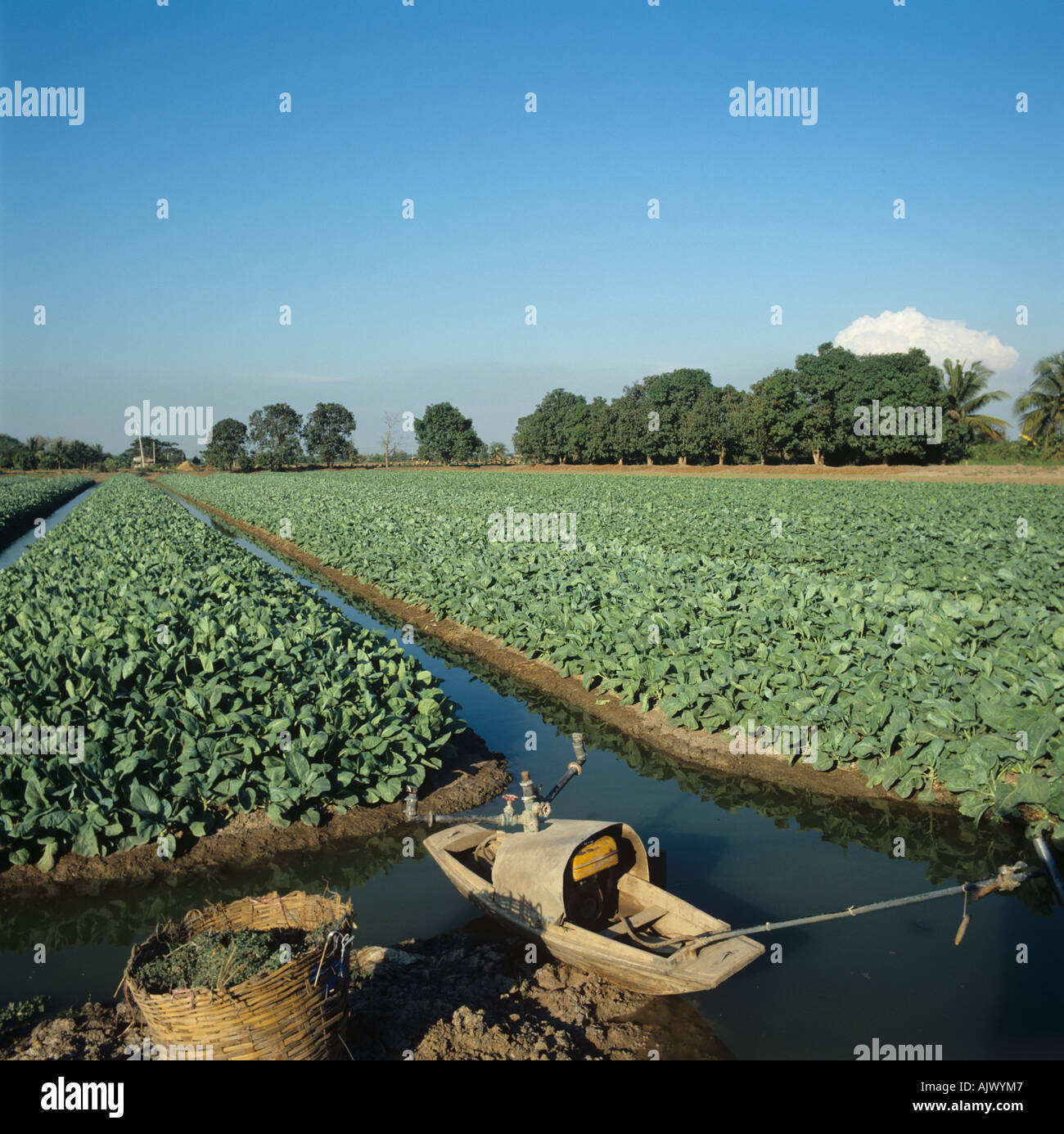 Cavolo Verza Colture Su Letti Sollevata Con I Canali Di Irrigazione La Pianura Centrale Della Thailandia Foto Stock Alamy