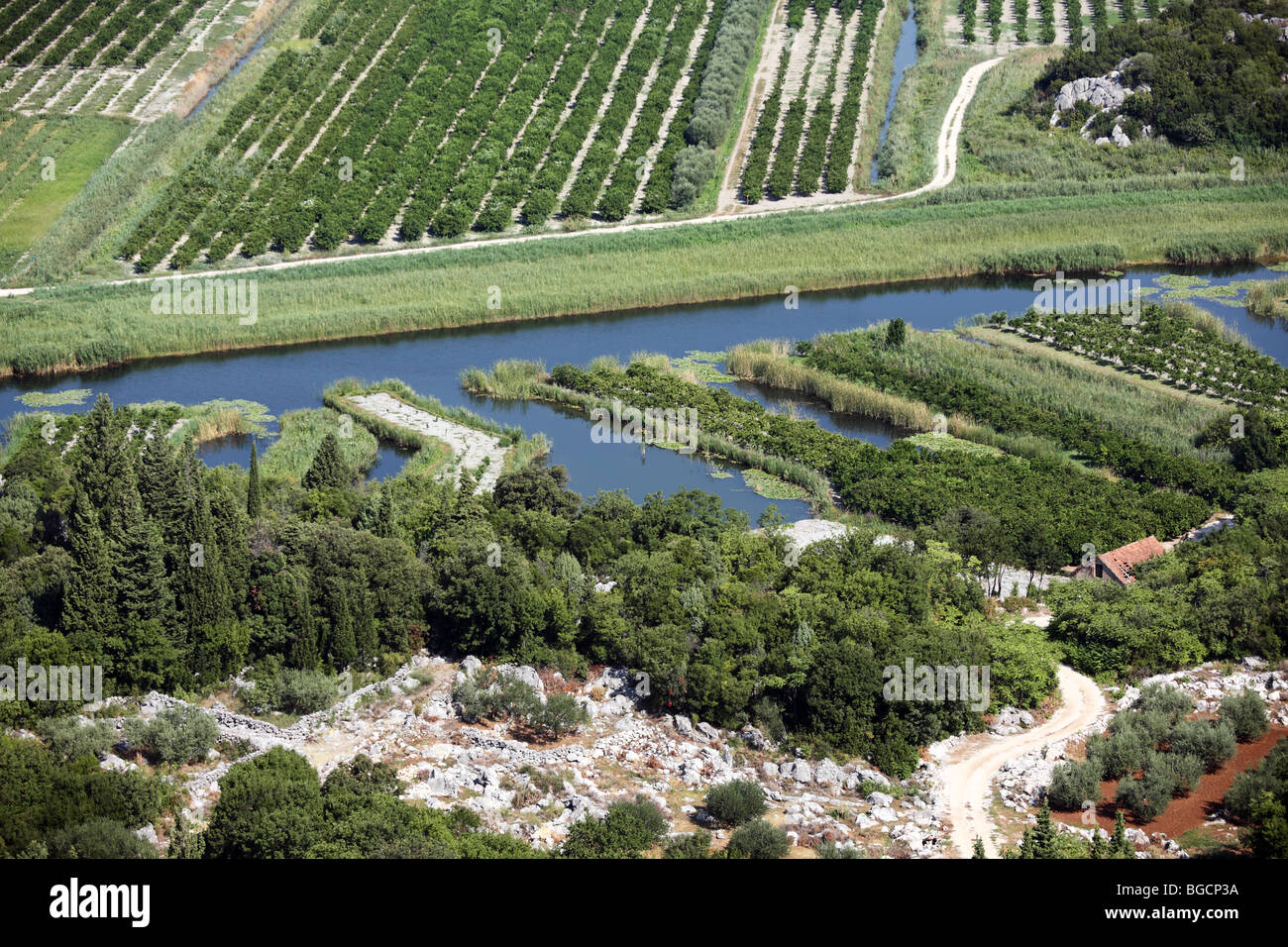 Veduta Aerea Del Drenaggio Suolo Agricolo E I Canali Di Irrigazione In Neratva Estuario Del Fiume Croazia Foto Stock Alamy