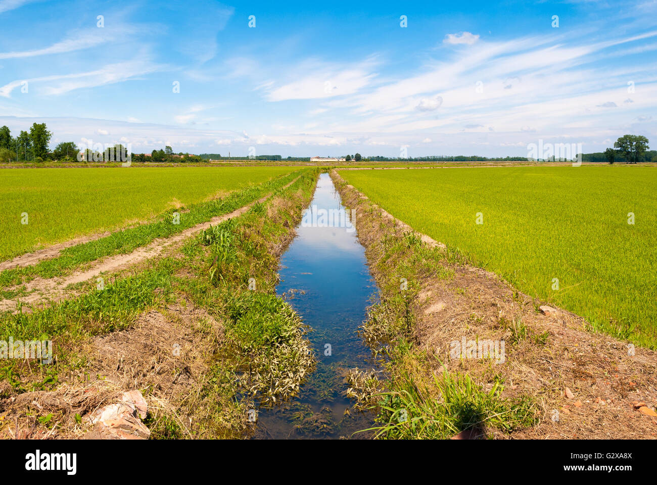 Risaie Con Acqua E Canale Di Irrigazione Foto Stock Alamy