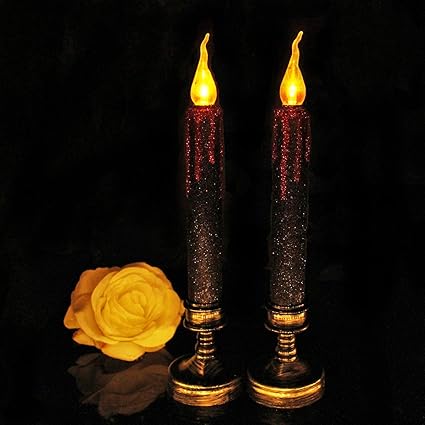 Wwk Pillar Senza Fiamma Taper Candele Accese Black Gold Retro Finestra Candele Halloween Decorazione A Lume Di Candela Tea Lights Funziona A Batterie Led Candele 2 1 D 9 6 H 2 Pack Amazon It