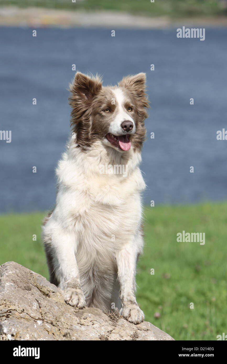 Cane Border Collie Adulto Lilla E Bianco In Piedi Su Una Roccia Foto Stock Alamy