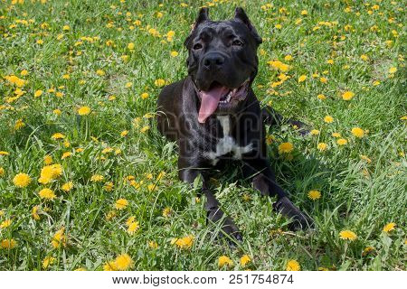 Cane Corso Italian Breed Of Dog Sitting On A Meadow Stock Image Iblbtf03905302 Fotosearch