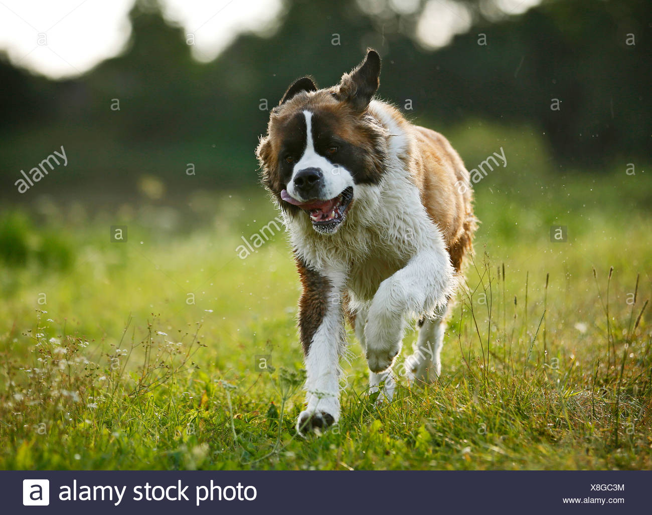 San Bernardo Maschio Cane Che Corre Su Un Prato Foto Stock Alamy
