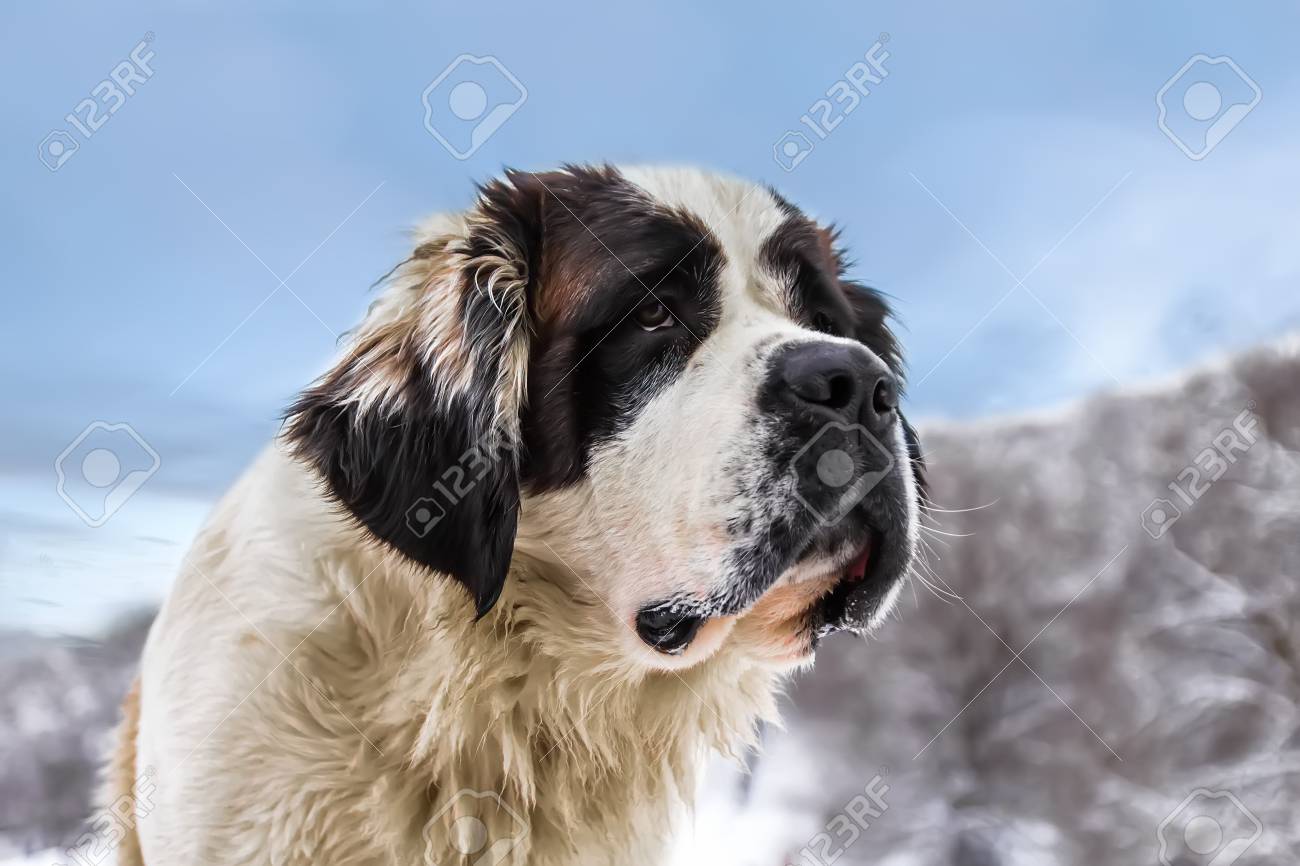 Immagini Stock Il San Bernardo Grande Cane E Un Amico Leale E Un Grande Aiuto Nella Neve Image 18005131