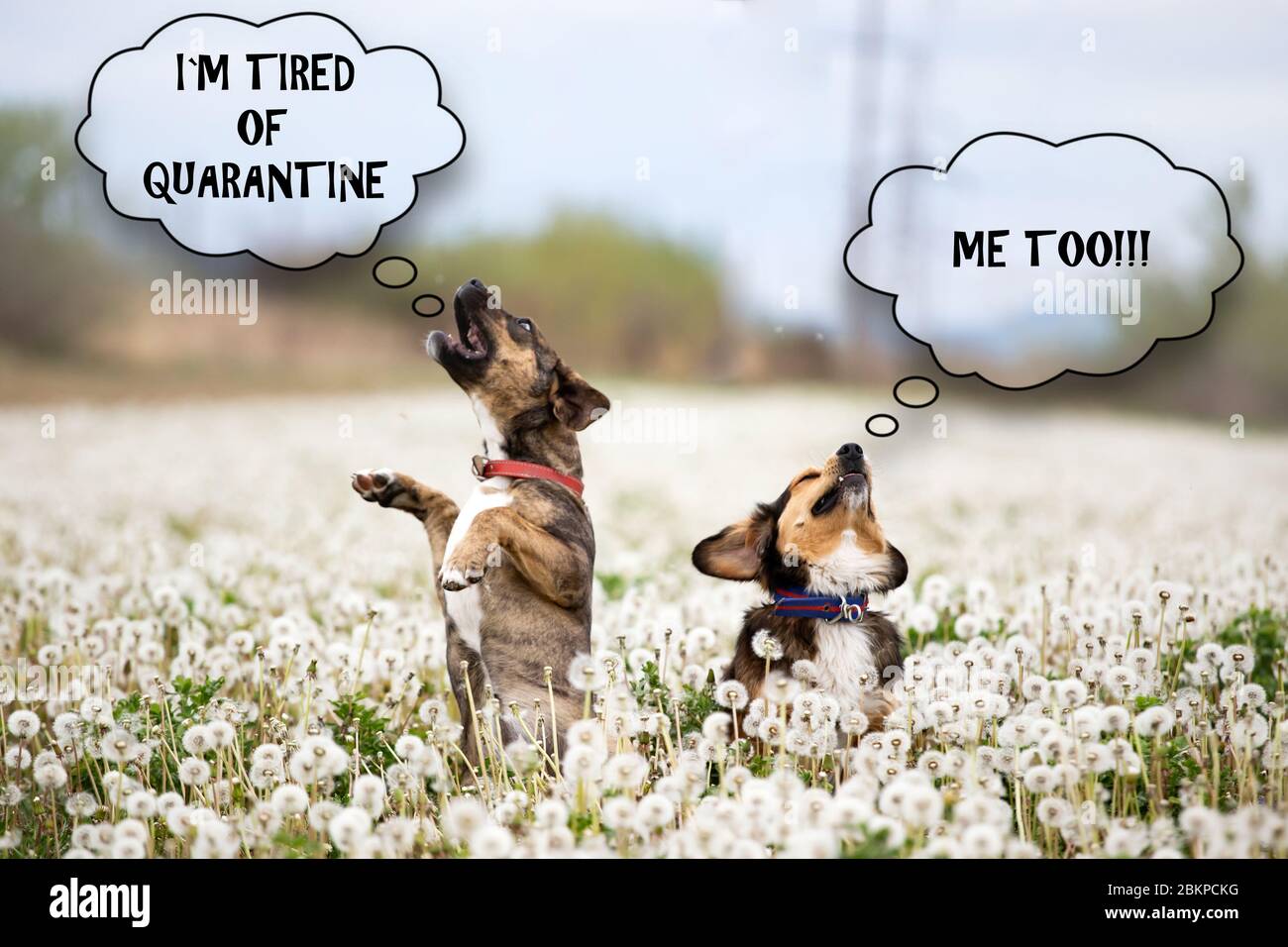 Cani Divertenti Con I M Stanchi Di Testo Di Quarantena Concetto Di Quarantena Dovuto Al Coronavirus Covid 19 Epidemia Mondiale Foto Stock Alamy