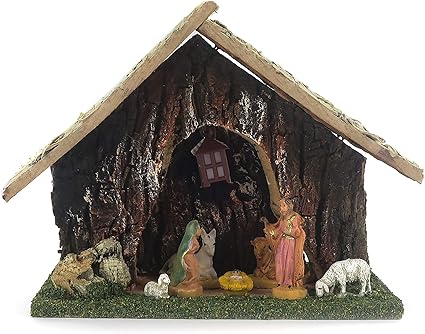 Scenario Presepe Capanna In Legno Con Nativita Natale Decorazione Amazon It Casa E Cucina